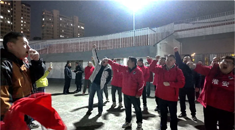 绿茵场上的角逐蓄势待发当淮安区队的球员 在训练场上刻苦备战时拉拉队员也聚在一起开展集中排练力求以最佳状态为球员加油助威 排练现场 啦啦队员全情投入铿锵有力的鼓点声中队员们不断练习 磨合口号呐喊助威声节奏鲜明 气势如虹力求在比赛当日营造出最燃的氛